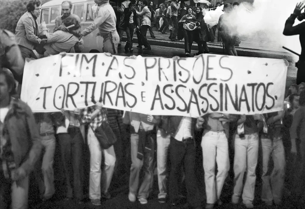 Imagem de um protesto durante a ditadura contra o fim das torturas e assassinatos.